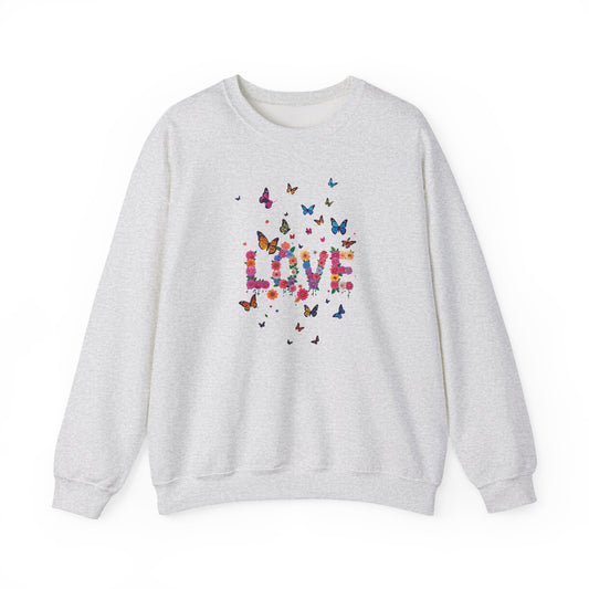 Unisex Floral Love Sweatshirt, Love Floral Sweatshirt, Floral Butterfly Sweatshirt, 50/50 Cotton-Poly Valentine's Day Sweatshirt 04