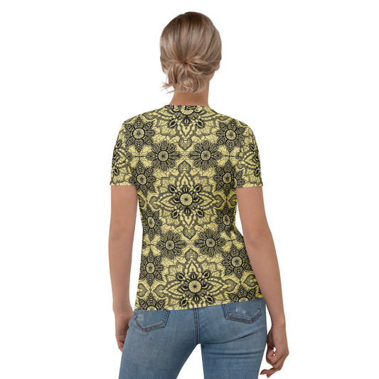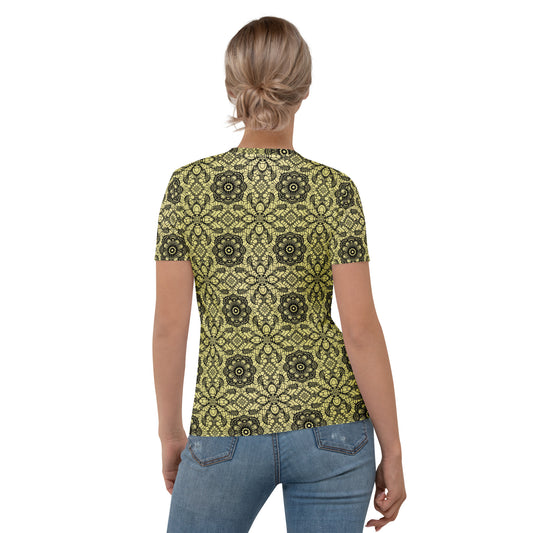 Lace Print Poly Shirt, Poly Shirt with Lace Print, Poly T-Shirt with Lace Print, Yellow Lace Shirt 17