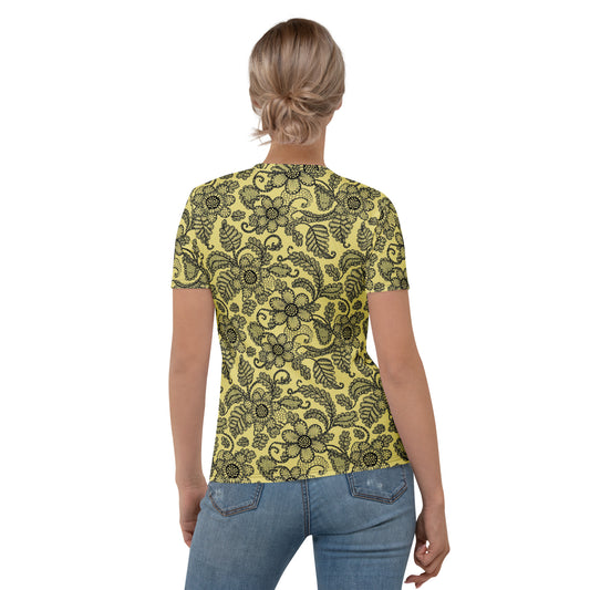 Lace Print Poly Shirt, Poly Shirt with Lace Print, Poly T-Shirt with Lace Print, Yellow Lace Shirt 18