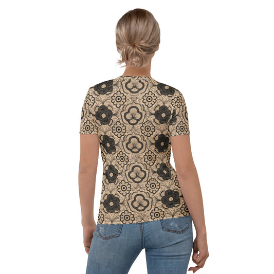 Lace Print Poly Shirt, Poly Shirt with Lace Print, Poly T-Shirt with Lace Print, Cream Lace Shirt 24