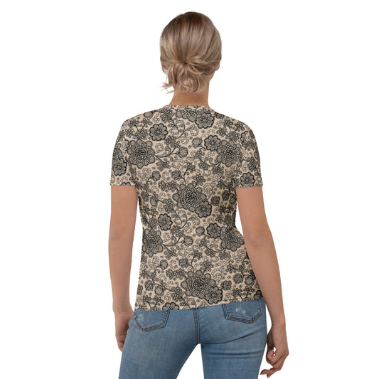 Lace Print Poly Shirt, Poly Shirt with Lace Print, Poly T-Shirt with Lace Print, Cream Lace Shirt 23