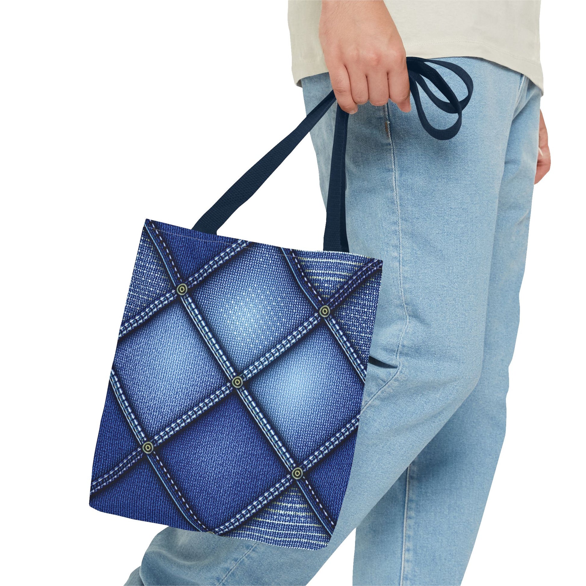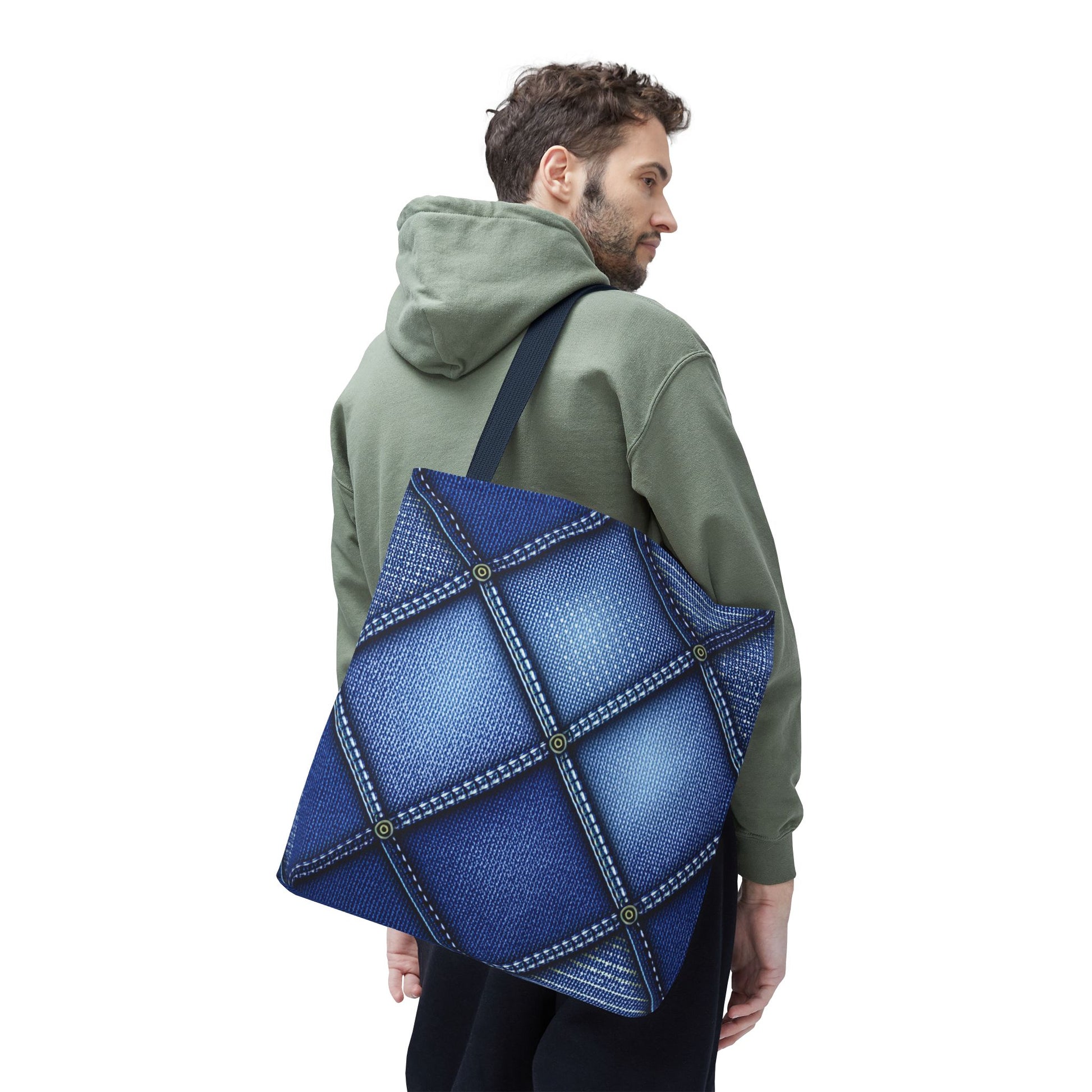 Denim Print Canvas Tote Bag – Elegant Poly Shoulder Bag - Enhance everyday functionality with timeless style in our Denim Print Canvas Tote Bag. Designed for versatility, this custom-printed tote is available in three convenient sizes and offers multiple handle color options to perfectly complement your look. Crafted from premium spun polyester, it delivers exceptional durability with double-stitched seams, sturdy cotton webbing straps, and a non-woven laminate interior.