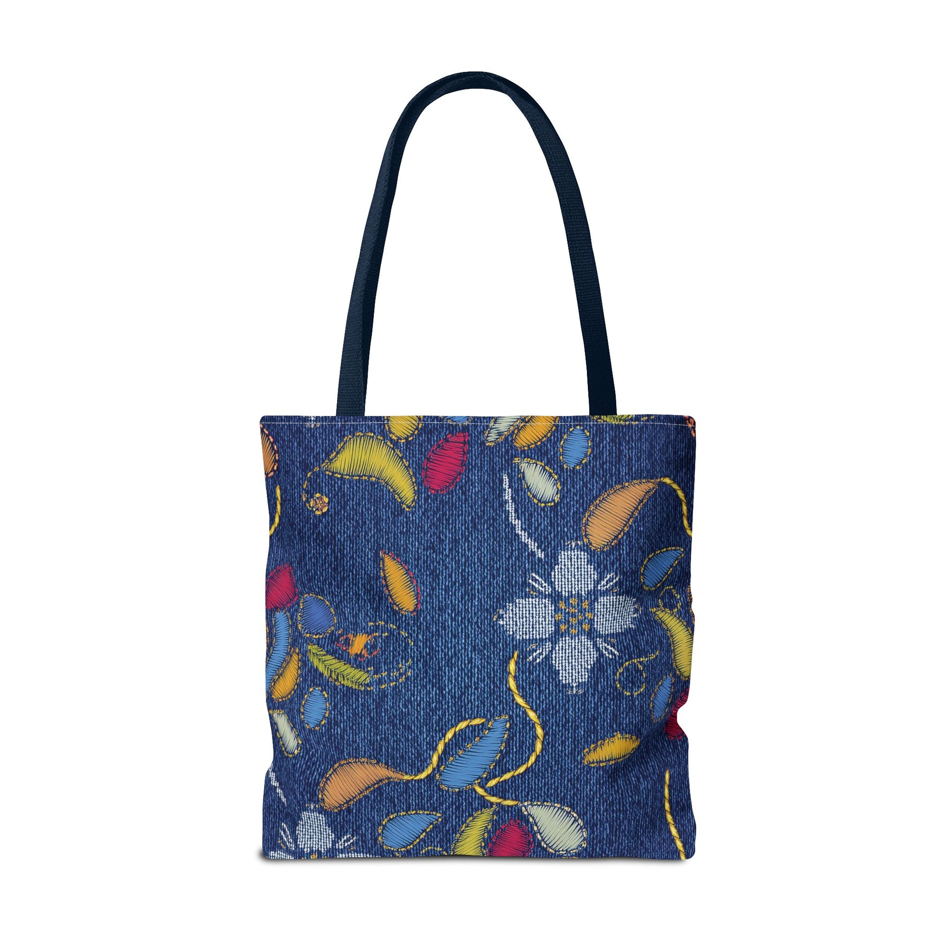 Denim Print Canvas Tote Bag – Elegant Poly Shoulder Bag - Enhance everyday functionality with timeless style in our Denim Print Canvas Tote Bag. Designed for versatility, this custom-printed tote is available in three convenient sizes and offers multiple handle color options to perfectly complement your look. Crafted from premium spun polyester, it delivers exceptional durability with double-stitched seams, sturdy cotton webbing straps, and a non-woven laminate interior.