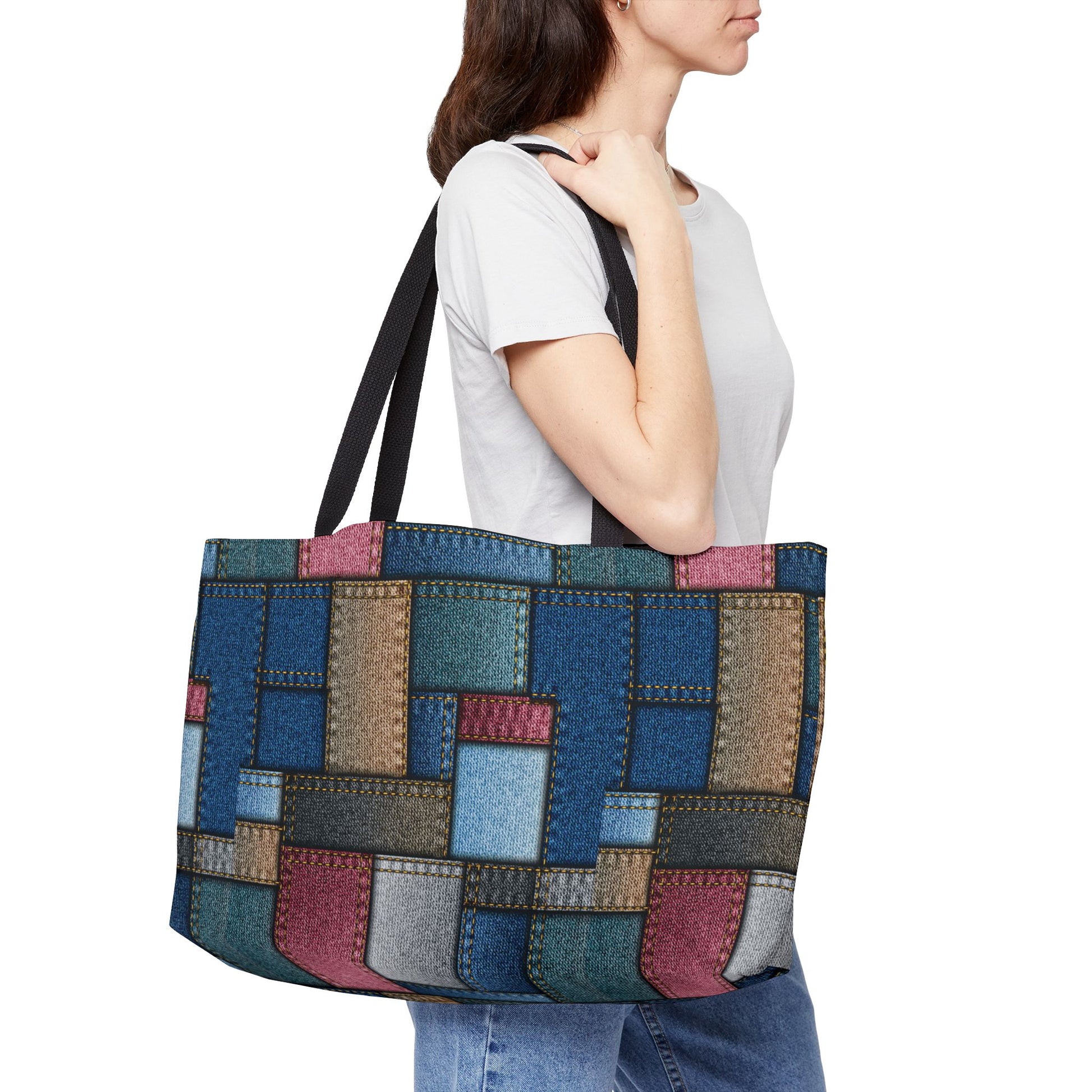 Denim Print Weekender Bag High-Quality 100% Spun Polyester 24x13 Canvas Bag 2