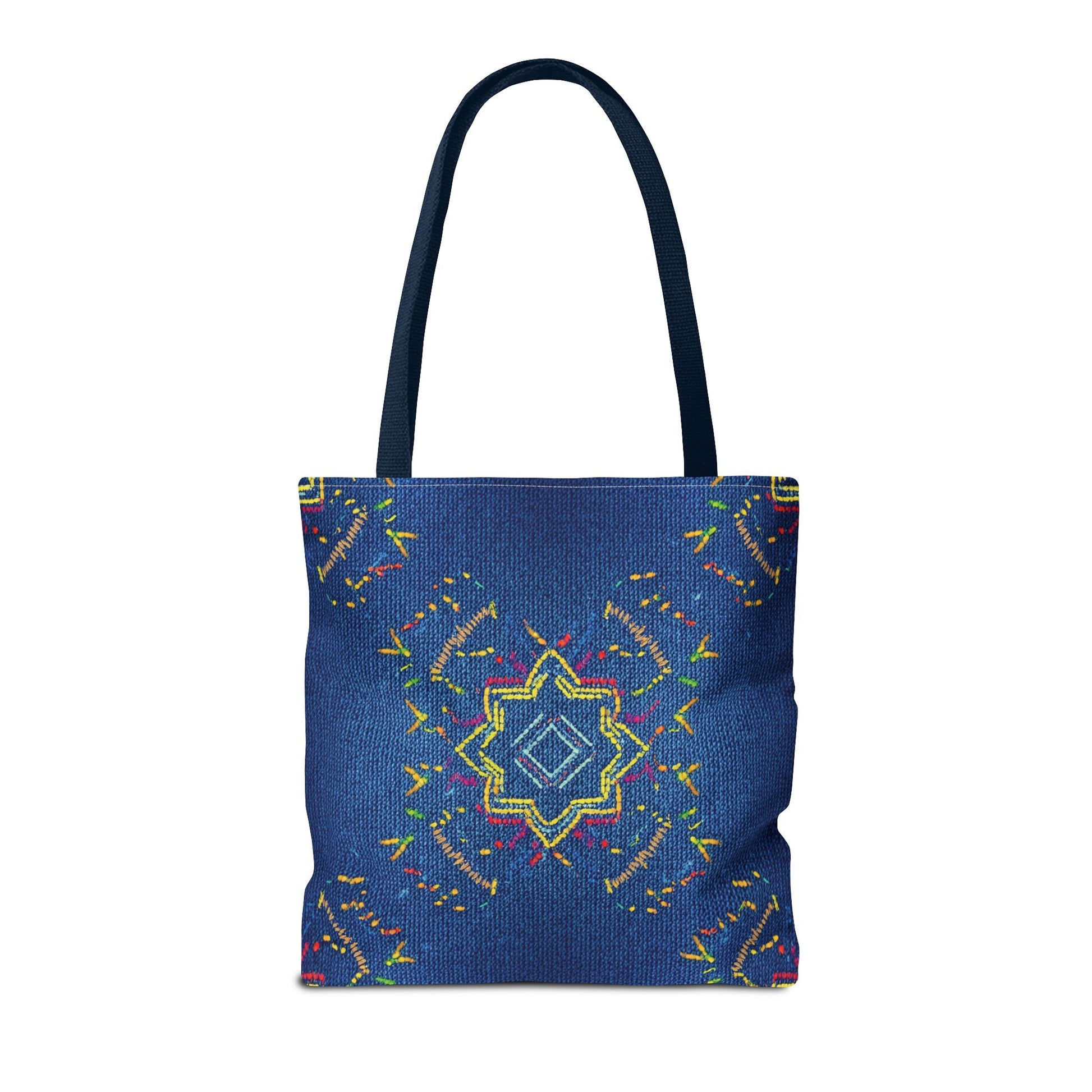 Denim Print Canvas Tote Bag – Elegant Poly Shoulder Bag - Enhance everyday functionality with timeless style in our Denim Print Canvas Tote Bag. Designed for versatility, this custom-printed tote is available in three convenient sizes and offers multiple handle color options to perfectly complement your look. Crafted from premium spun polyester, it delivers exceptional durability with double-stitched seams, sturdy cotton webbing straps, and a non-woven laminate interior.