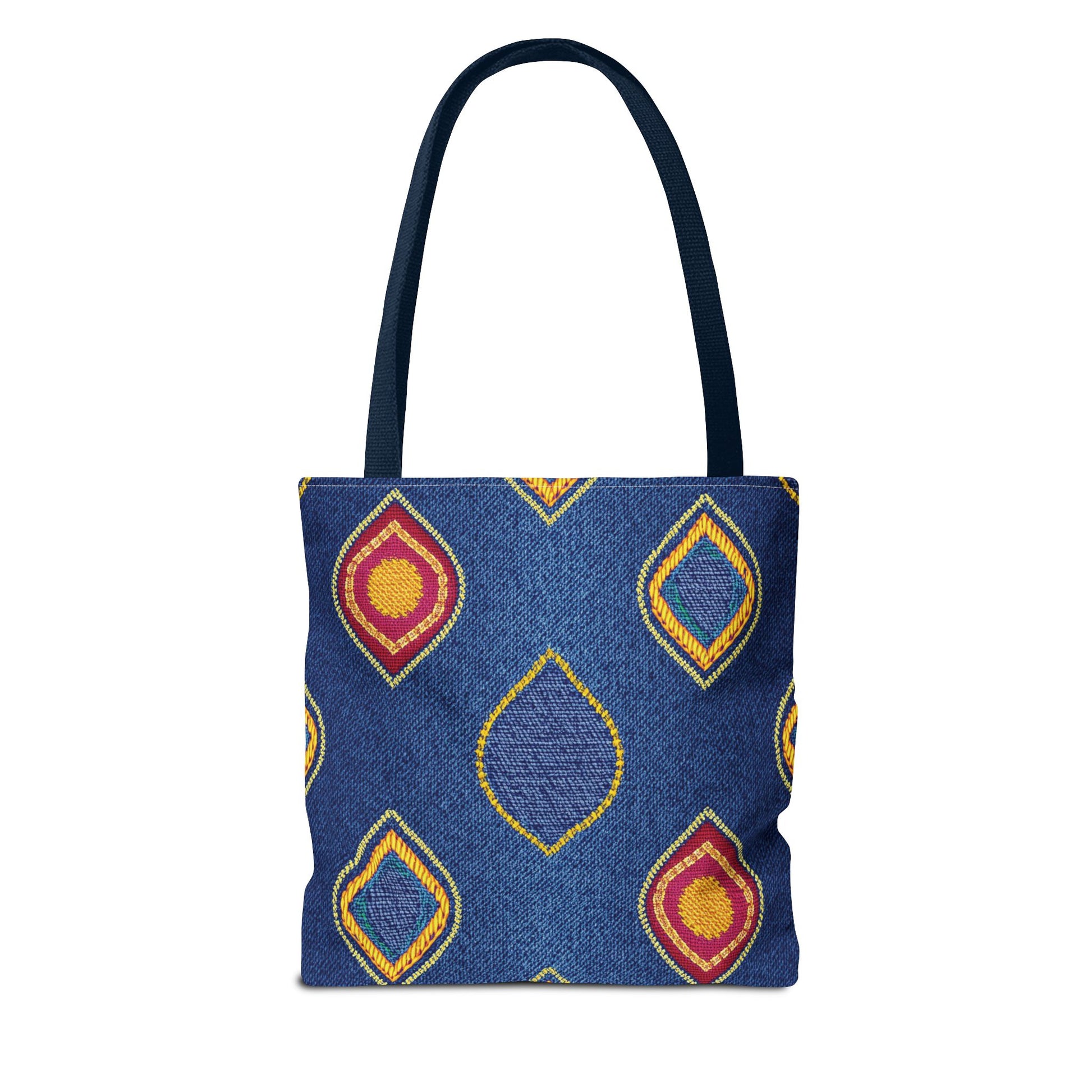 Denim Print Canvas Tote Bag – Elegant Poly Shoulder Bag - Enhance everyday functionality with timeless style in our Denim Print Canvas Tote Bag. Designed for versatility, this custom-printed tote is available in three convenient sizes and offers multiple handle color options to perfectly complement your look. Crafted from premium spun polyester, it delivers exceptional durability with double-stitched seams, sturdy cotton webbing straps, and a non-woven laminate interior.