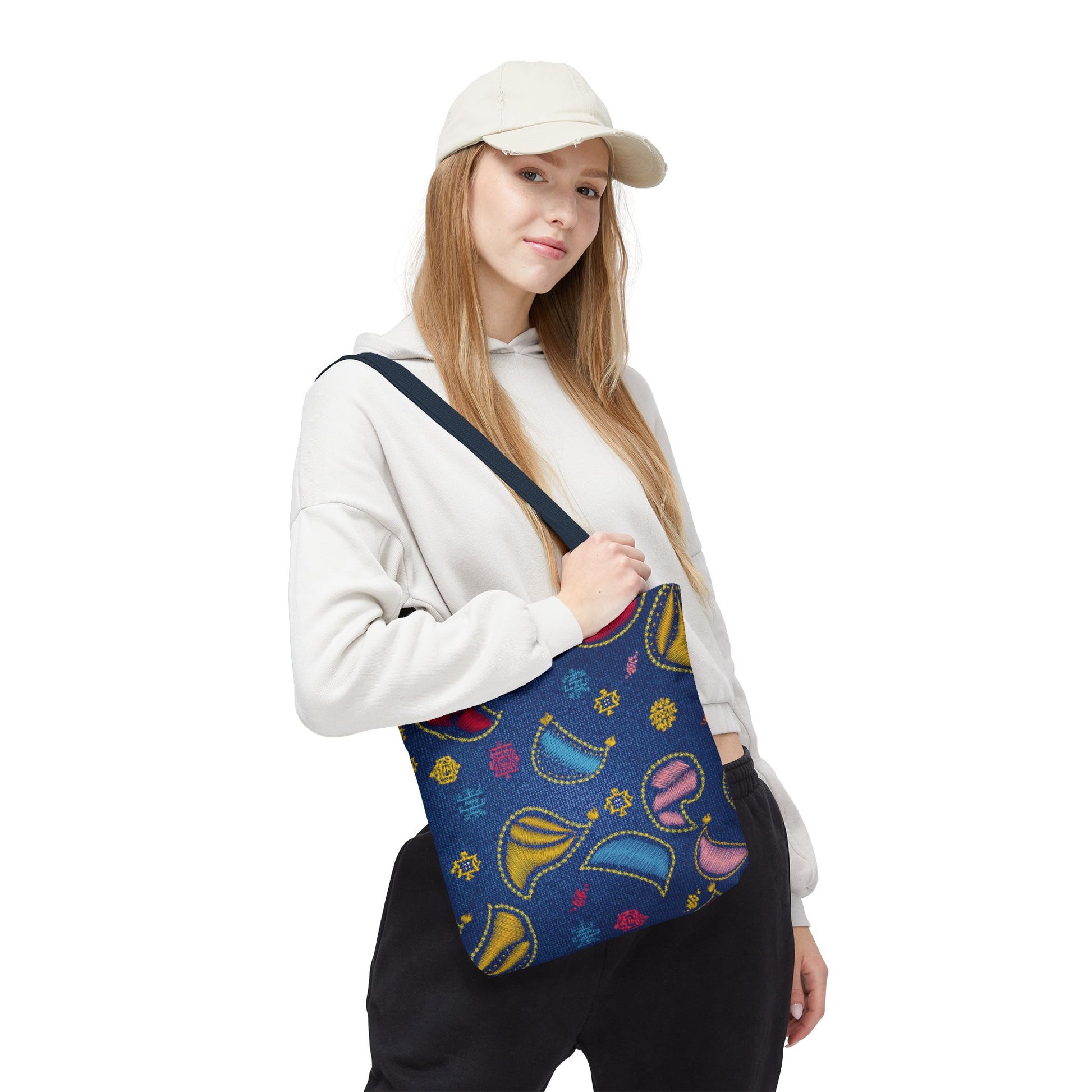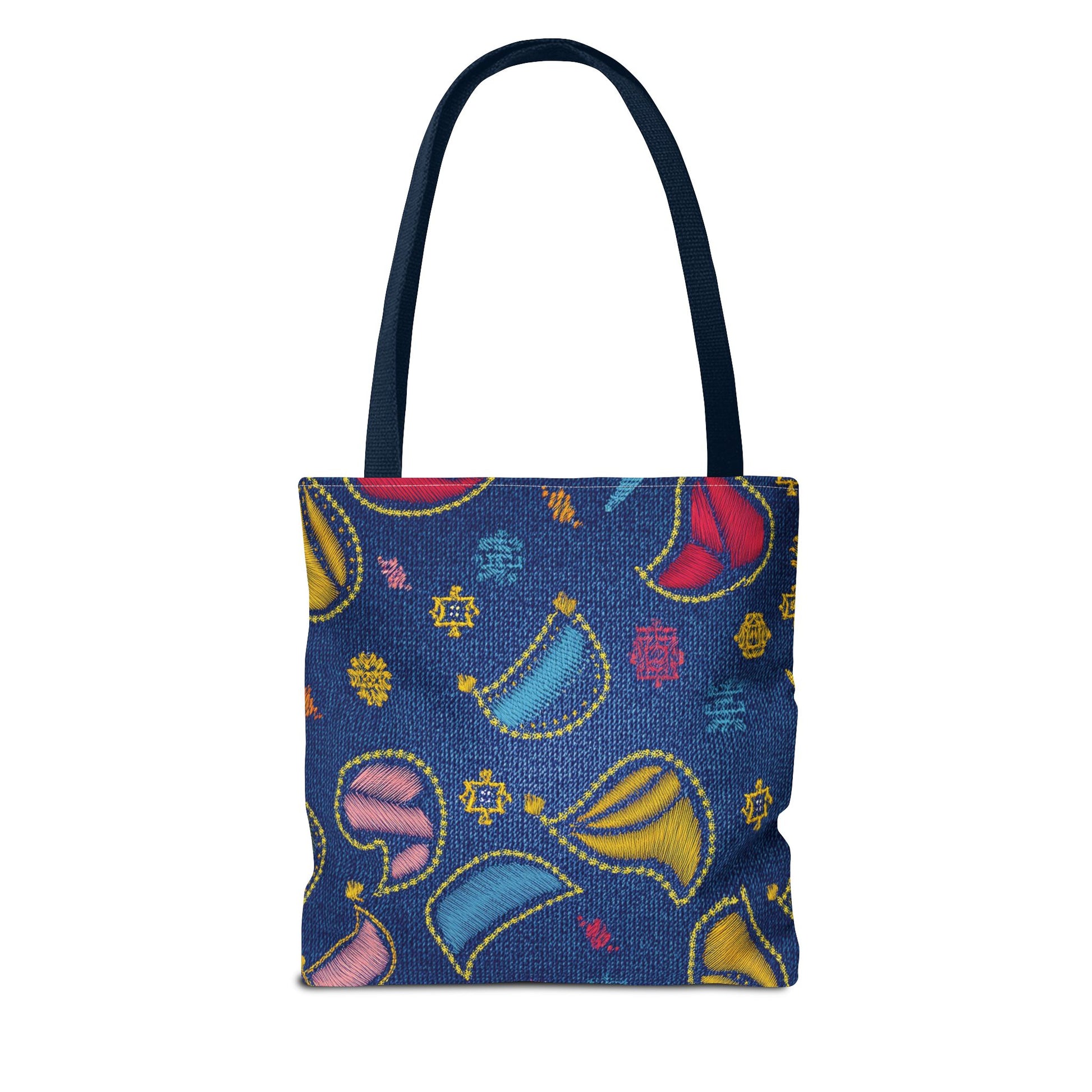 Denim Print Canvas Tote Bag – Elegant Poly Shoulder Bag - Enhance everyday functionality with timeless style in our Denim Print Canvas Tote Bag. Designed for versatility, this custom-printed tote is available in three convenient sizes and offers multiple handle color options to perfectly complement your look. Crafted from premium spun polyester, it delivers exceptional durability with double-stitched seams, sturdy cotton webbing straps, and a non-woven laminate interior.
