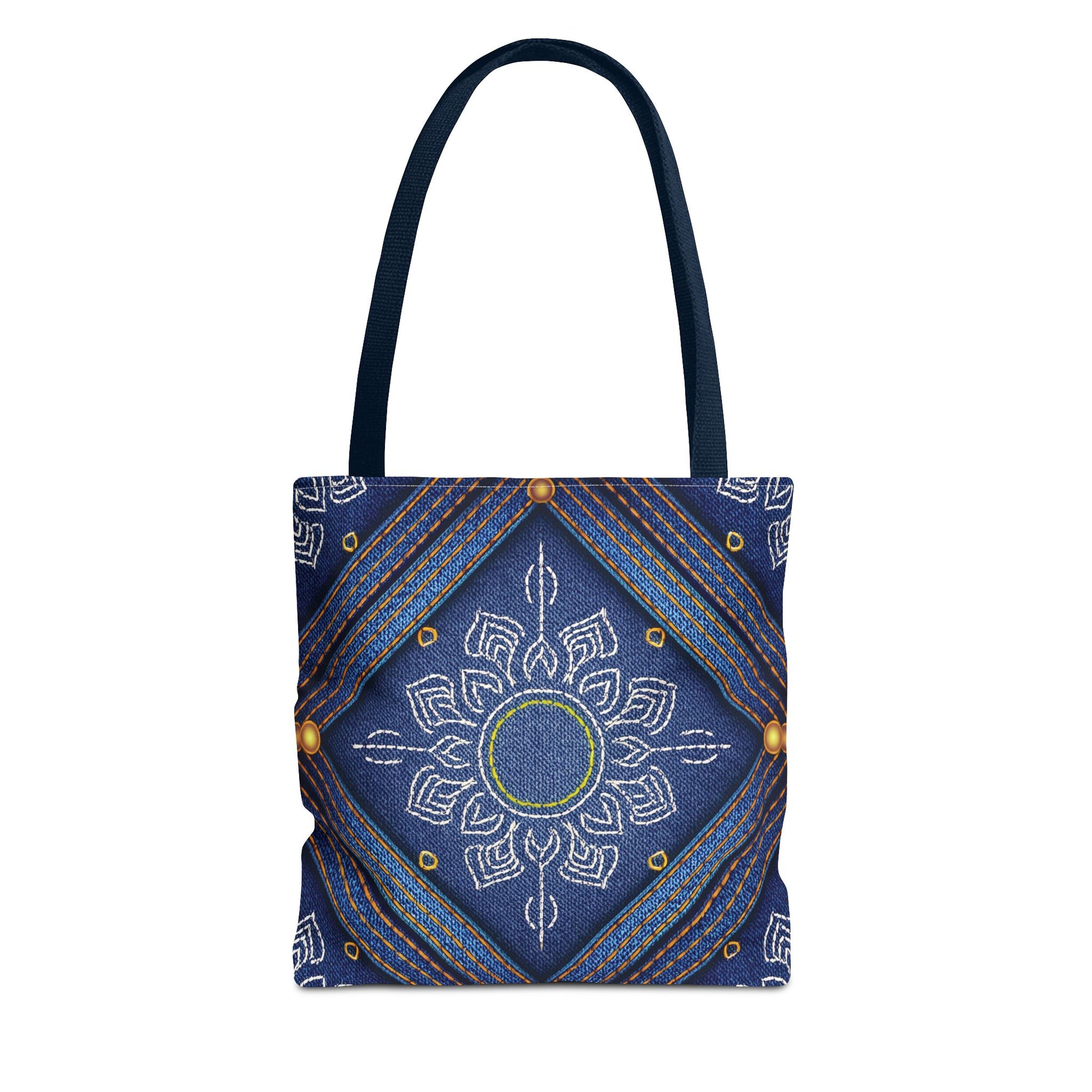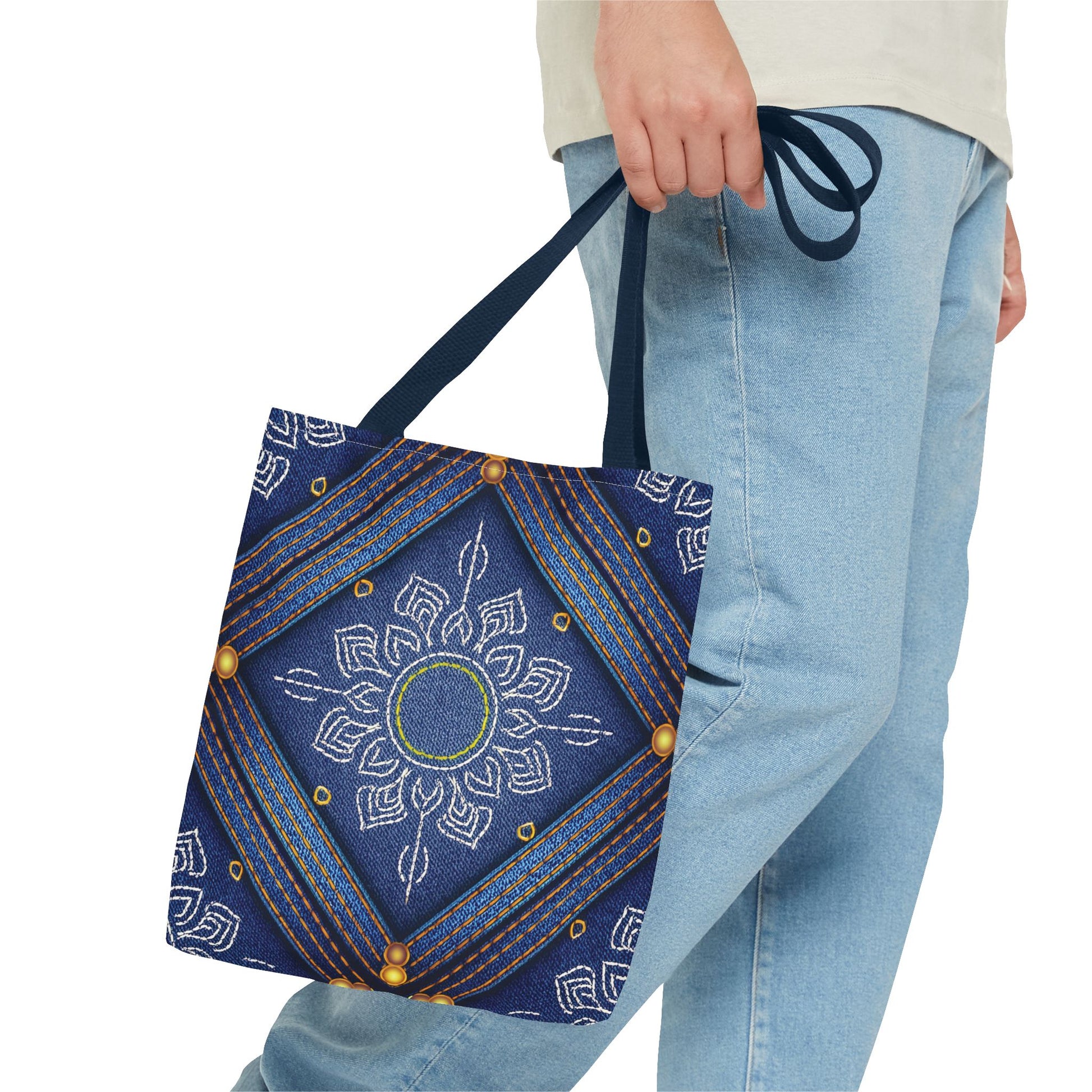 Denim Print Canvas Tote Bag – Elegant Poly Shoulder Bag - Enhance everyday functionality with timeless style in our Denim Print Canvas Tote Bag. Designed for versatility, this custom-printed tote is available in three convenient sizes and offers multiple handle color options to perfectly complement your look. Crafted from premium spun polyester, it delivers exceptional durability with double-stitched seams, sturdy cotton webbing straps, and a non-woven laminate interior.