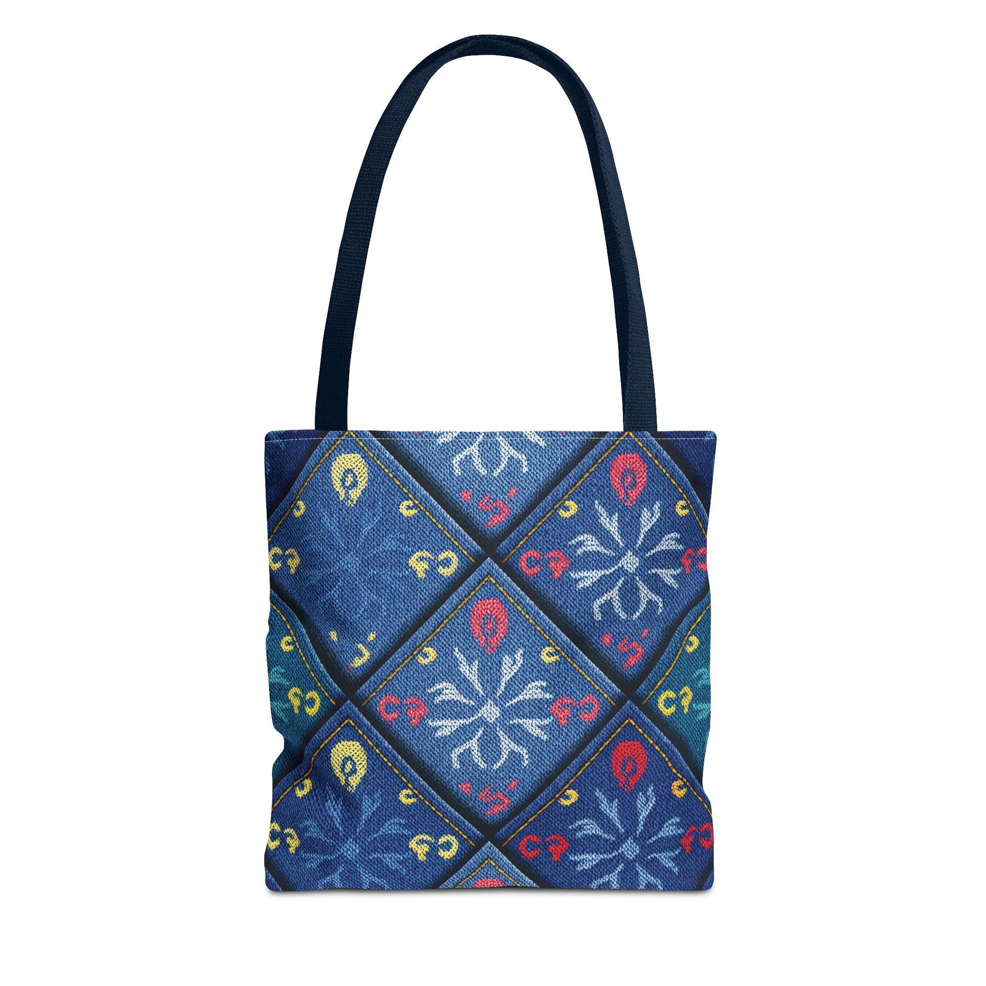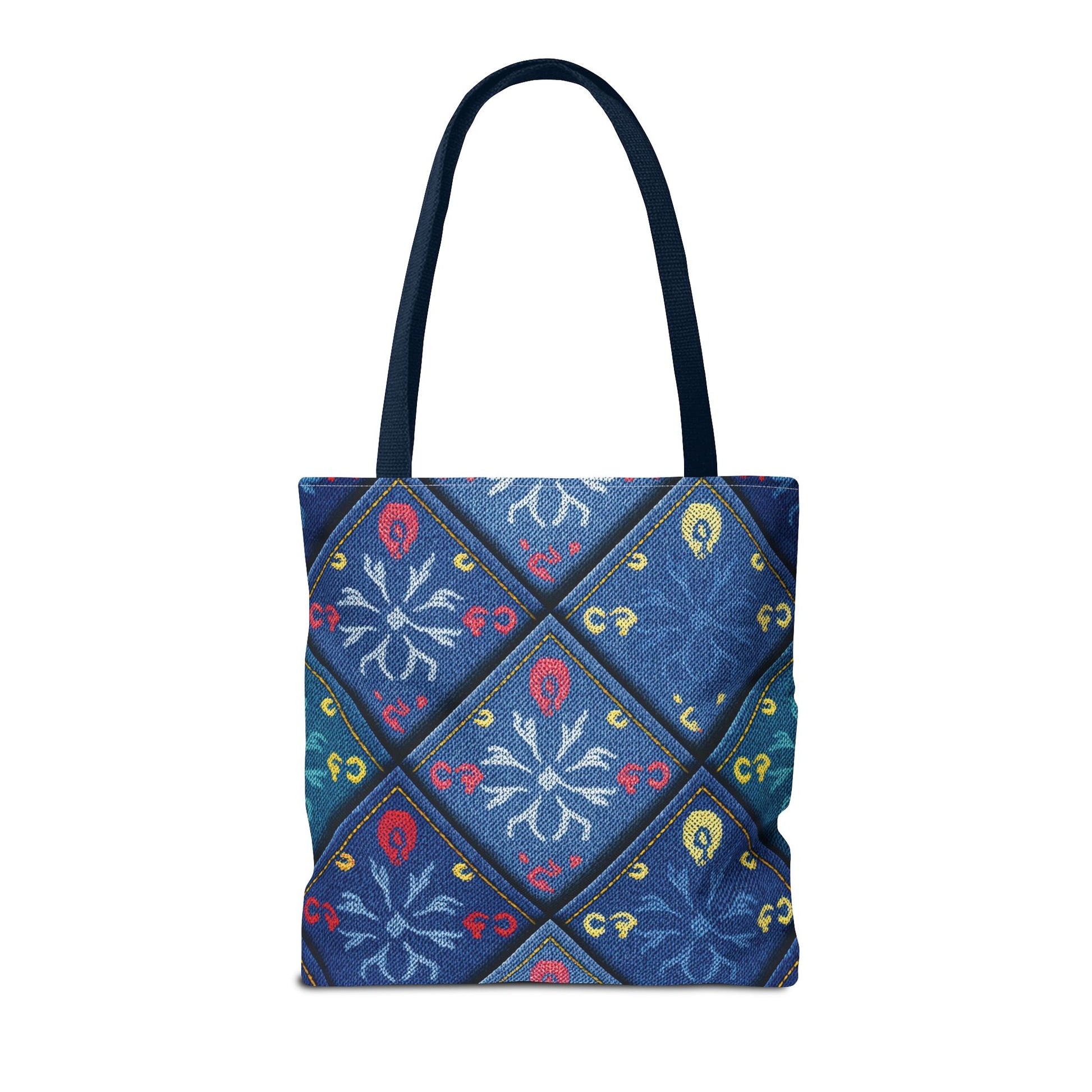Denim Print Canvas Tote Bag – Elegant Poly Shoulder Bag - Enhance everyday functionality with timeless style in our Denim Print Canvas Tote Bag. Designed for versatility, this custom-printed tote is available in three convenient sizes and offers multiple handle color options to perfectly complement your look. Crafted from premium spun polyester, it delivers exceptional durability with double-stitched seams, sturdy cotton webbing straps, and a non-woven laminate interior.