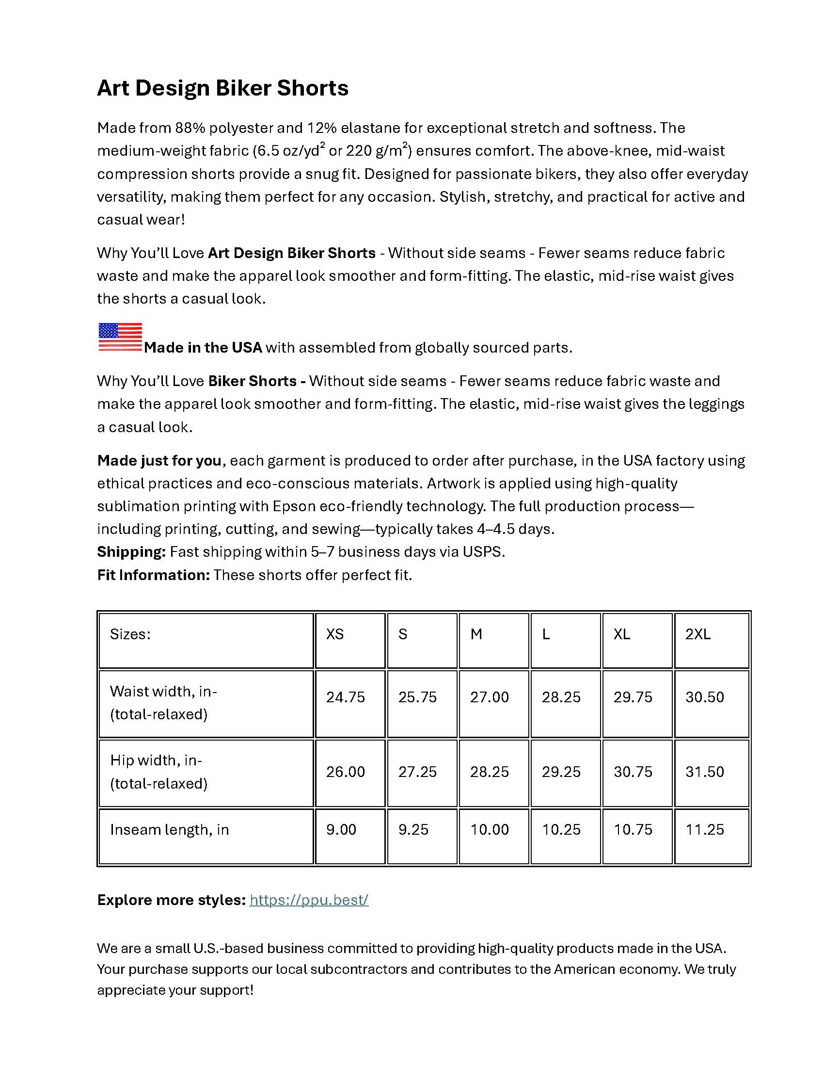 PPU BEST 出品的裝飾騎行短褲。免運費!採用 88% 聚酯纖維和 12% 氨綸混紡布料,兼具卓越的彈性和柔軟度。中等重量的布料(6.5 盎司/平方碼或 220 克/平方公尺)確保穿著舒適。這款及膝中腰緊身短褲貼合身型。專為騎乘愛好者設計,同時也適合日常穿著,是各種場合的理想選擇。時尚、彈性十足、實用百搭,是運動休閒穿著的完美選擇!