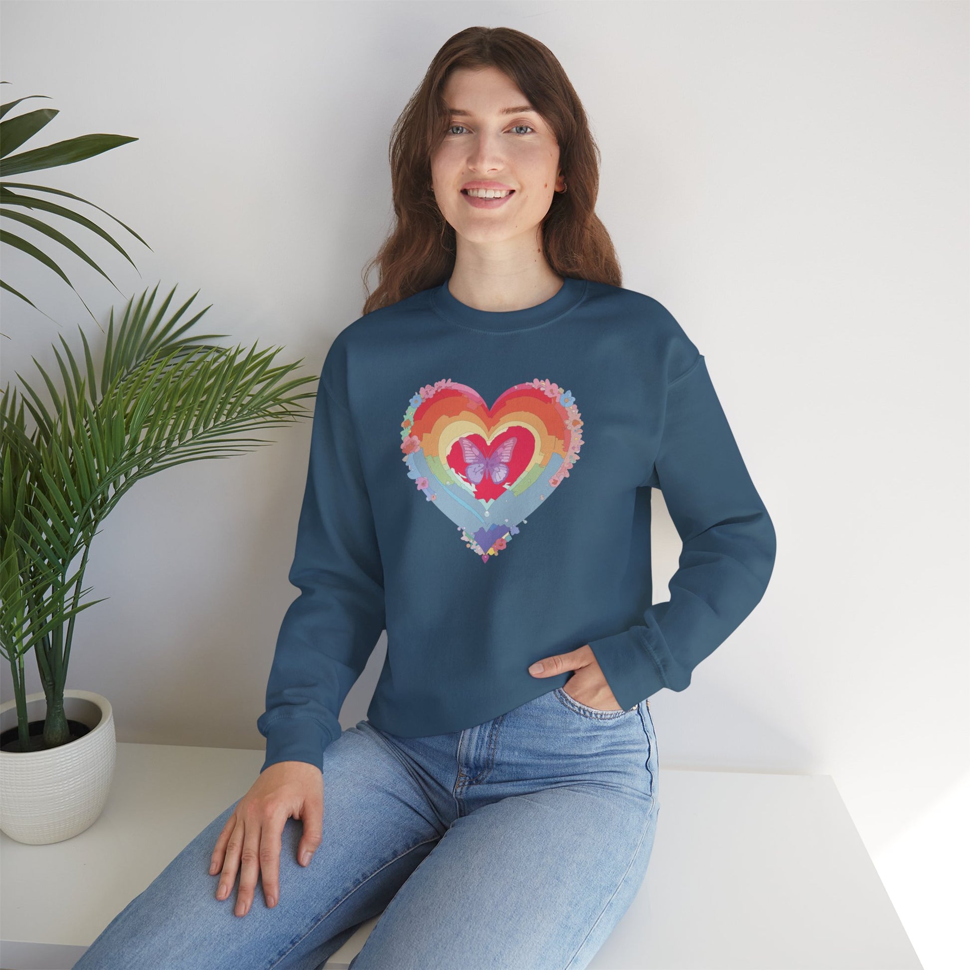 Rainbow Heart Sweatshirt, Floral Heart Sweatshirt, Floral Love Sweatshirt, Valentine's Day Sweatshirt, Rainbow Heart Floral Sweatshirt 116