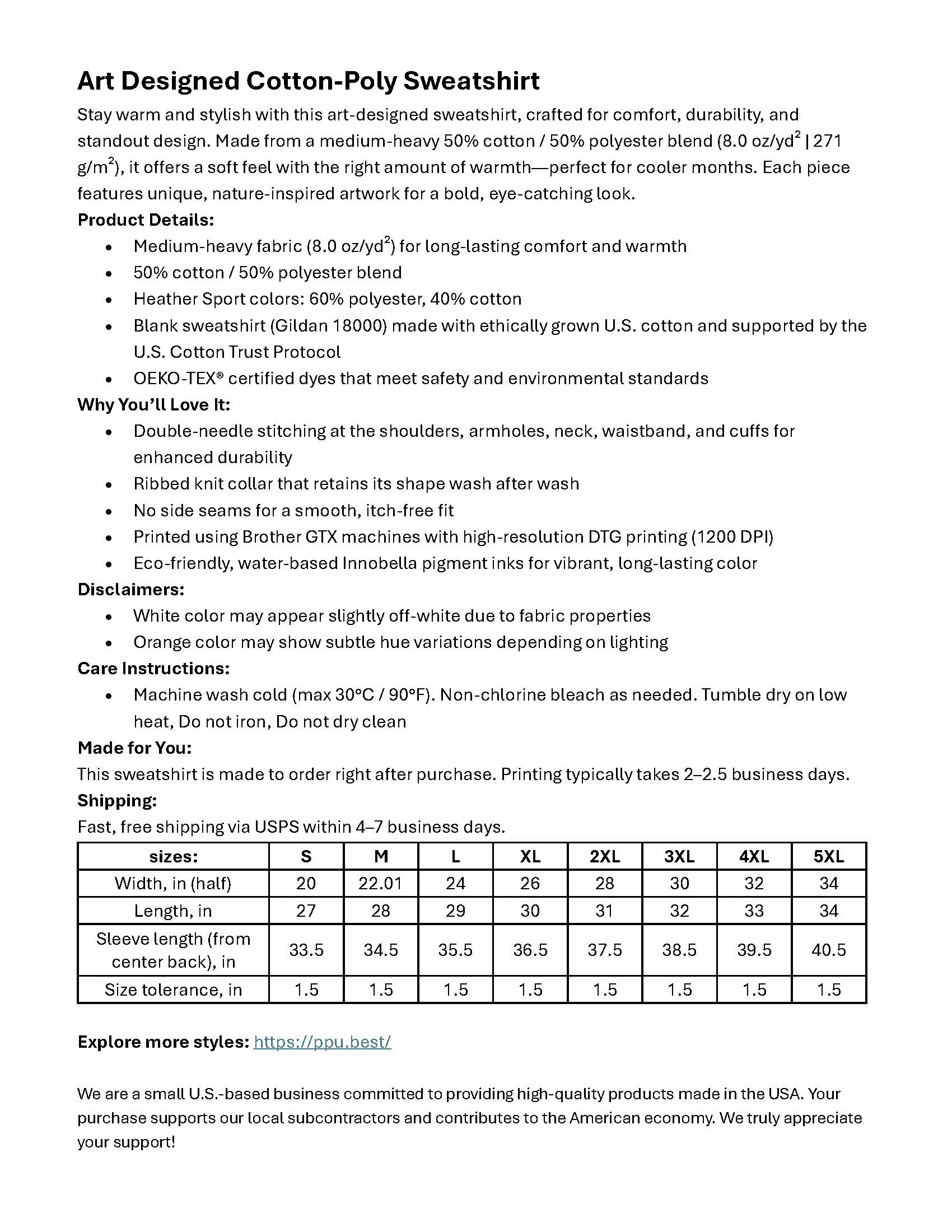 - Heavy fabric blend of 50% cotton and 50% polyester (8.0 oz/yd² (271.25 g/m²))