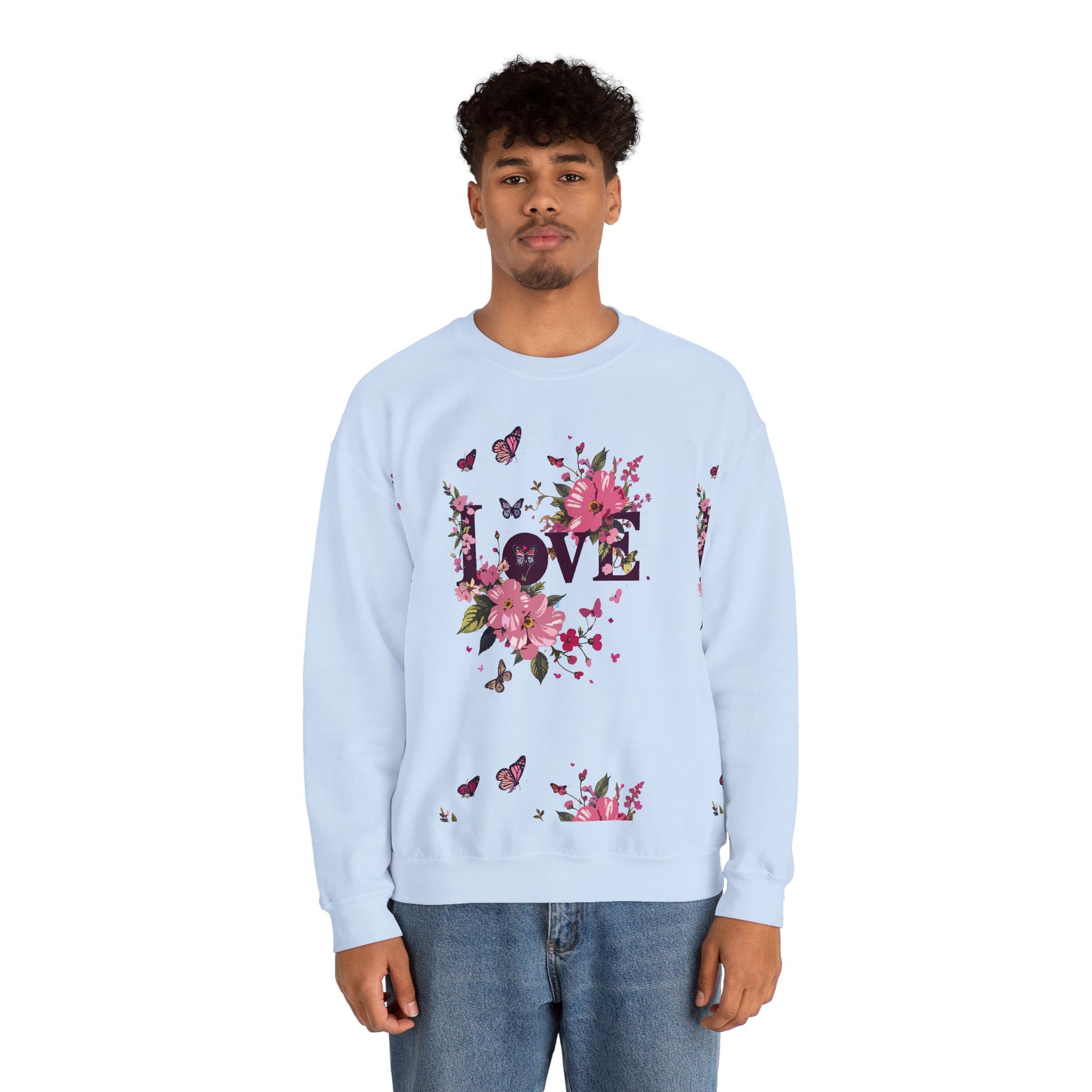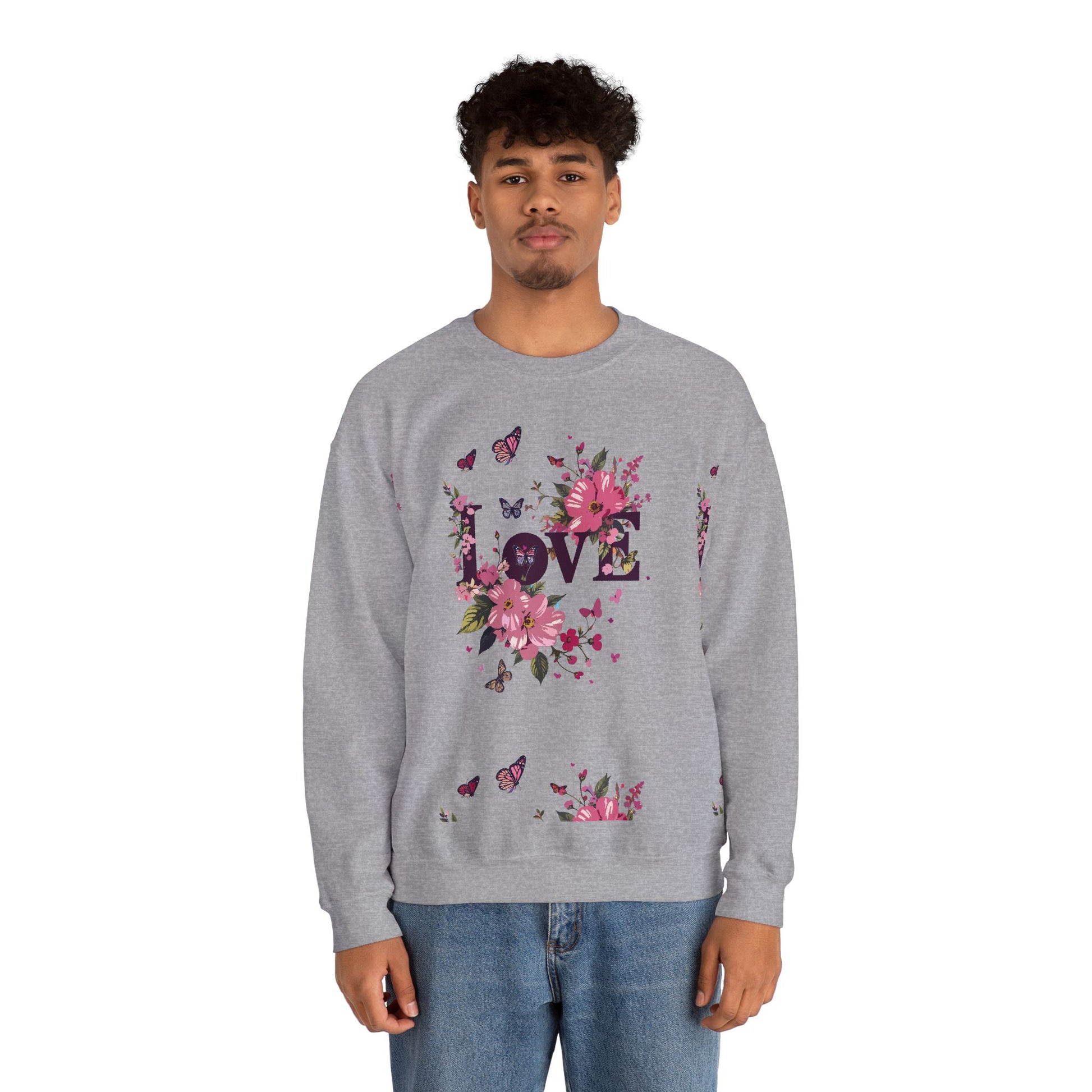 Unisex Floral Love Sweatshirt, Love Floral Sweatshirt, Floral Butterfly Sweatshirt, 50/50 Cotton-Poly Valentine's Day Sweatshirt 05
