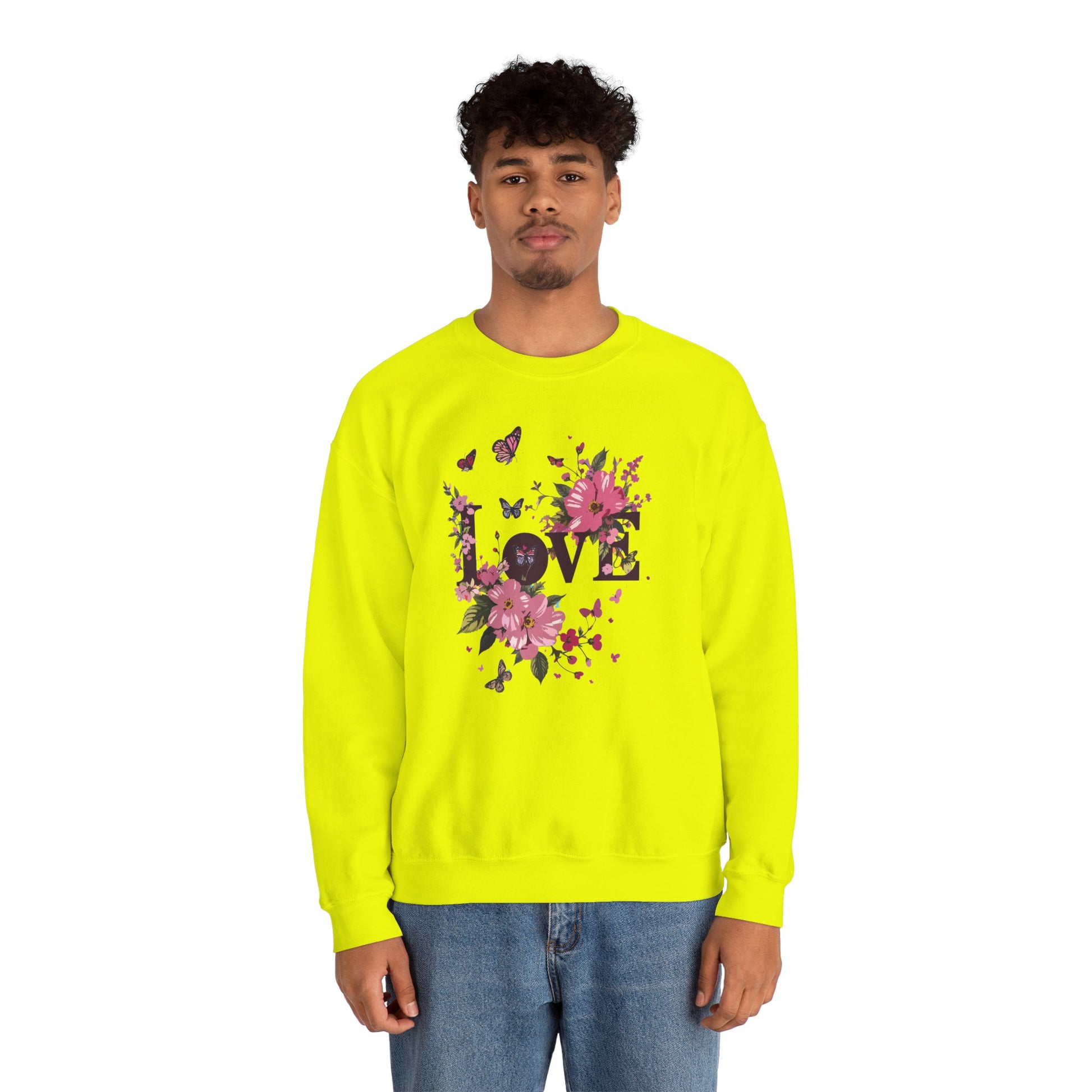 Unisex Floral Love Sweatshirt, Love Floral Sweatshirt, Floral Butterfly Sweatshirt, 50/50 Cotton-Poly Valentine's Day Sweatshirt